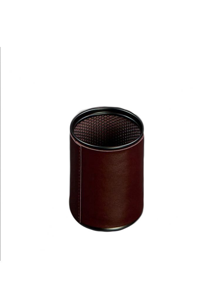 Стакан для ручек в кожаном чехле изготовлен из высококачественной натуральной кожи краст. Он предназначенный для хранения карандашей, различных ручек и других канцелярских принадлежностей.
