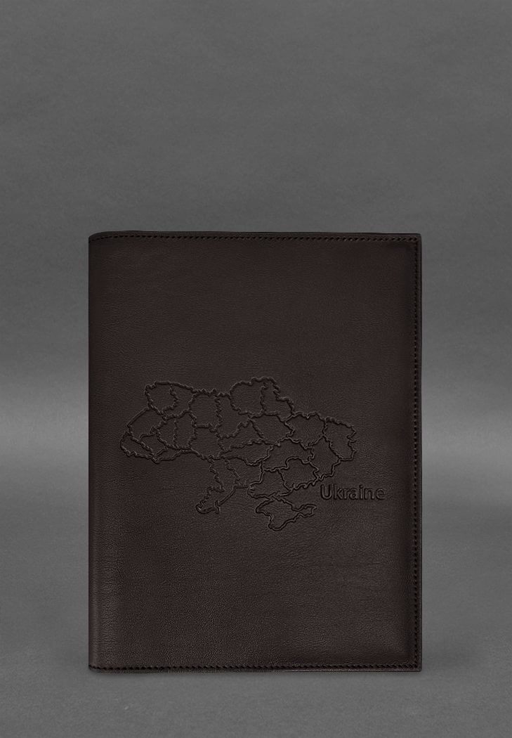 Кожаная обложка для нотариального реестра с картой Украины темно-коричневая - BN-SB-16-1-choko