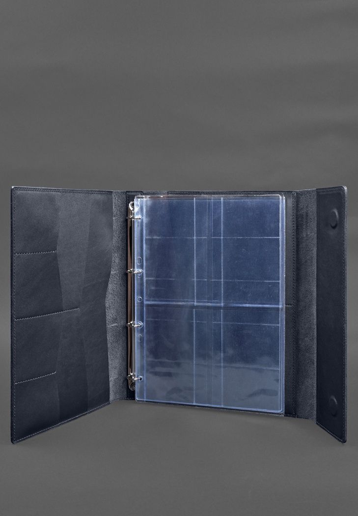 Кожаная папка для документов "Семейная" А4 на сегрегаторе с файлами темно-синяя - BN-DC-4-1-navy-blue в интернет-магазине кожанных сумок - blanknote.ua