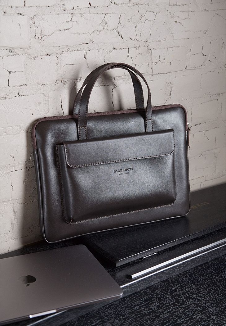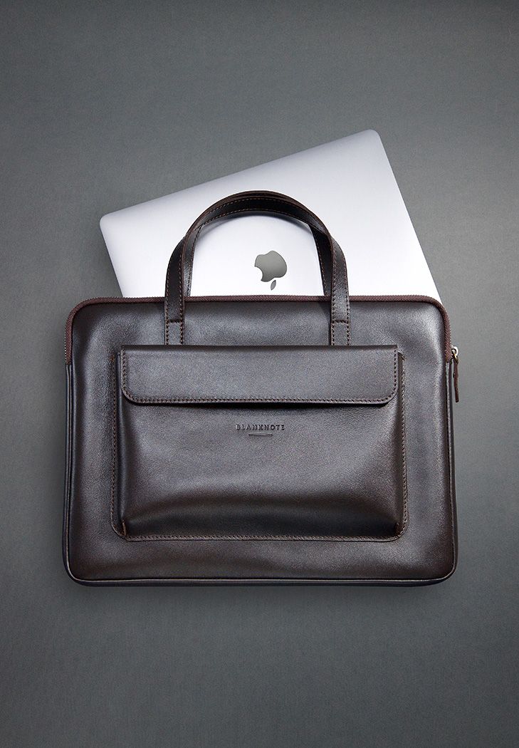 Кожаный чехол с ручками и карманом для MacBook 16 Pro Темно-коричневый - BN-GC-34-choko в магазине сумок - blanknote.ua